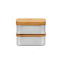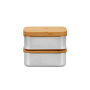 Lunchbox van hoogwaardig borosilicaatglas dat bestand is tegen hoge temperatuurverschillen. Met een bamboe deksel dat perfect sluit dankzij de siliconen afsluitring aan de onderzijde. Hierdoor kan de inhoud luchtdicht bewaard worden. Dus ook geschikt als vershoudbox. Inclusief sluitelastiek. Alleen het glas is vaatwasserbestendig en geschikt voor gebruik in de magnetron, oven en diepvries. Voor behoud van de opdruk wordt met de hand afwassen aanbevolen. Per stuk verpakt.